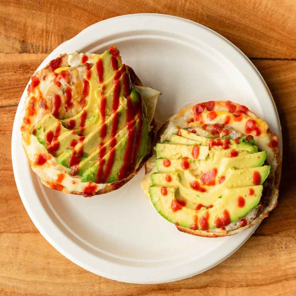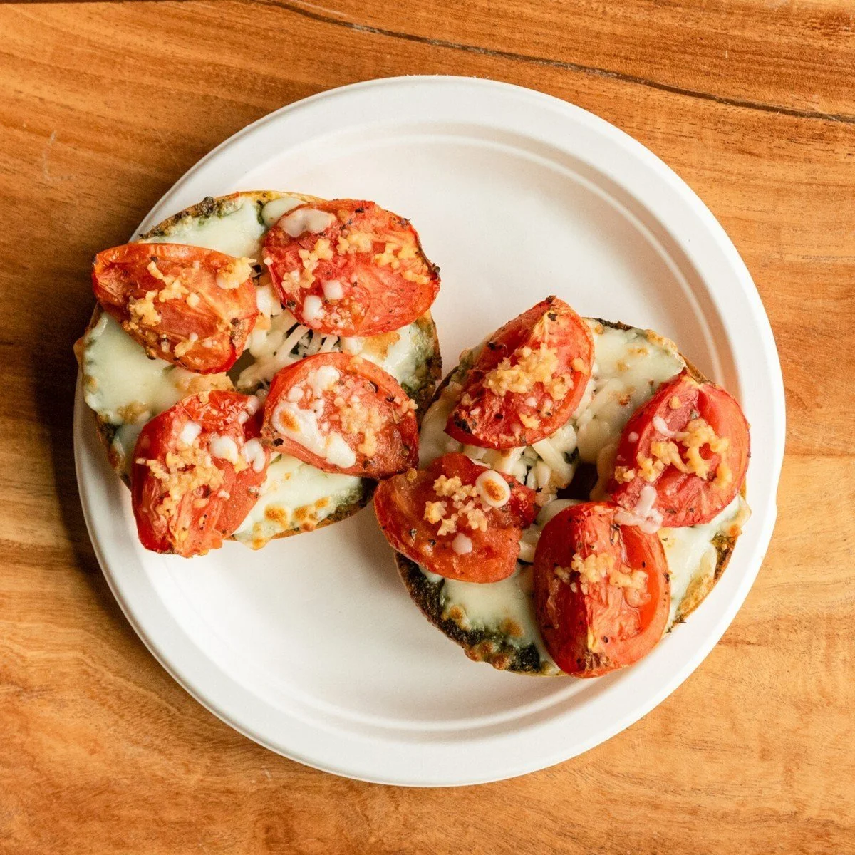 Choice of Bagel, pesto sauce, cheese blend, roasted tomato and garlic